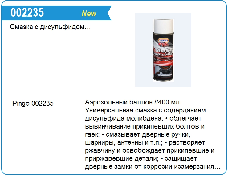 Смазка с дисульфидом молибдена MOS2 аэрозоль 400 м
