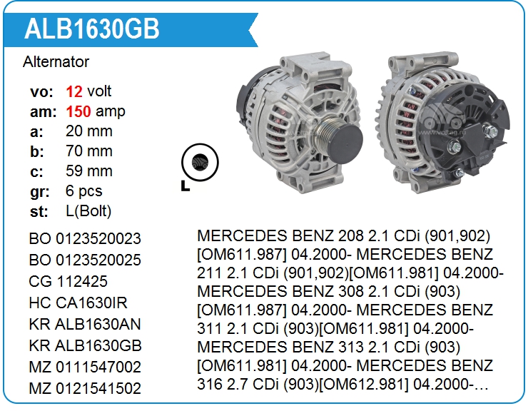 | Motorherz | ALB1630WA | Alternator | MSK | 1 | on stock | 250,58 EUR | |