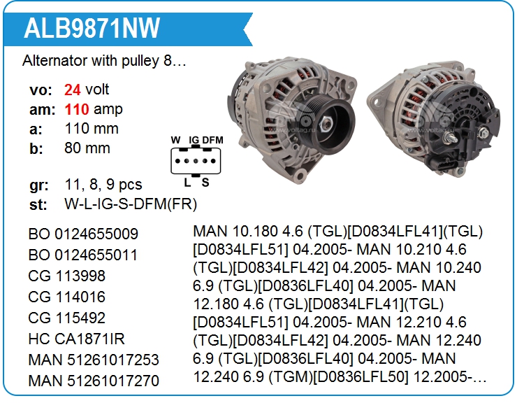 Alternator with pulley 11 grooves