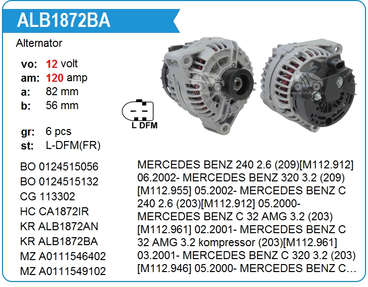 | KRAUF | ALB1872BA | Alternator | MSK | 1 | on stock | 231,30 EUR | |