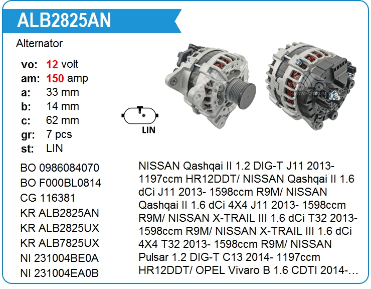 KRAUF | ALB2825AN | Alternator | MSK | 1 | on stock | 290,47 EUR | |