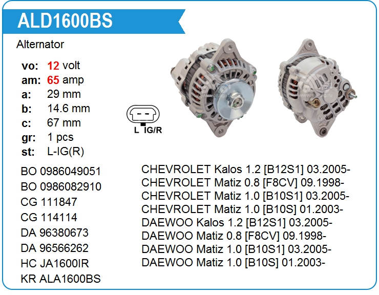 | KRAUF | ALD1600BS | Alternator | MSK | 1 | on stock | 183,11 EUR | |