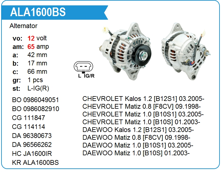 | KRAUF | ALA1600BS | Alternator | MSK | 1 | on stock | 173,48 EUR | |