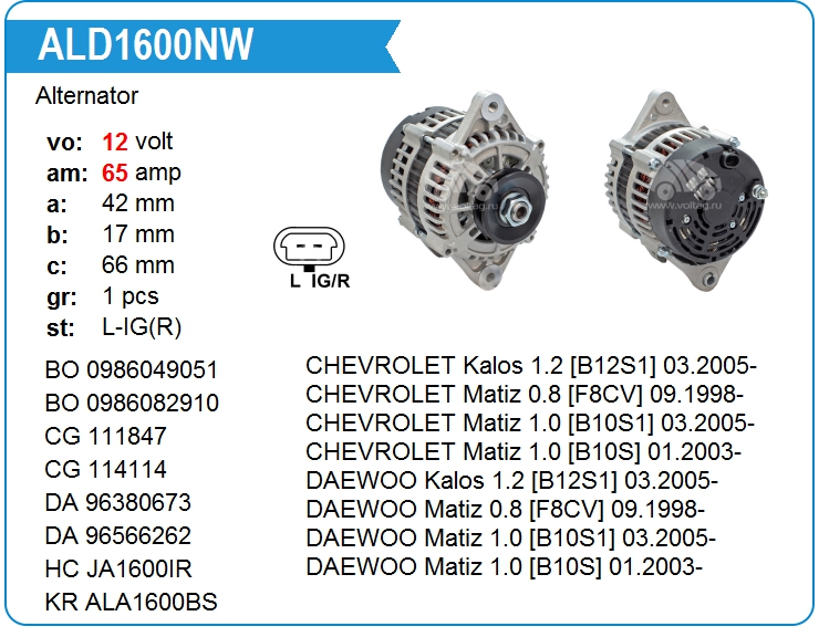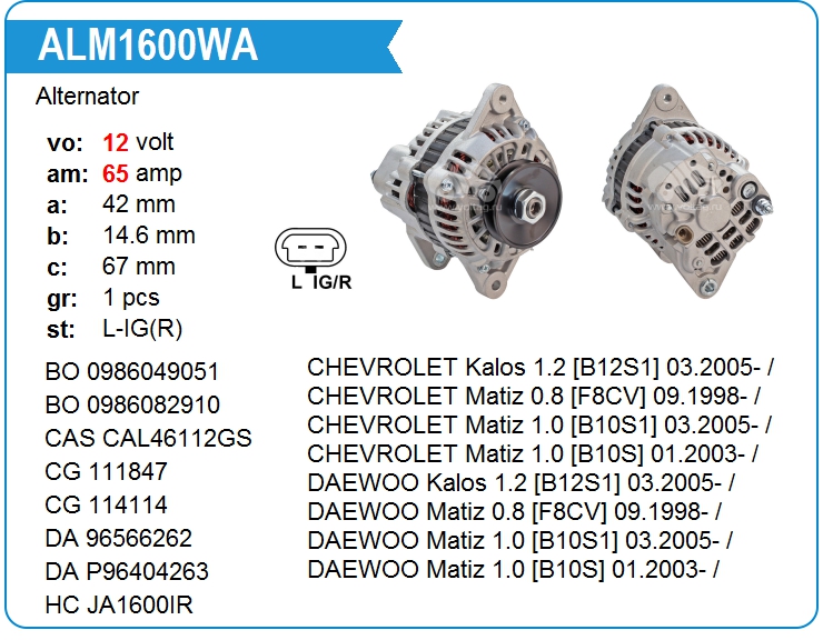 | Motorherz | ALM1600WA | Alternator | MSK | 1 | on stock | 173,48 EUR | |