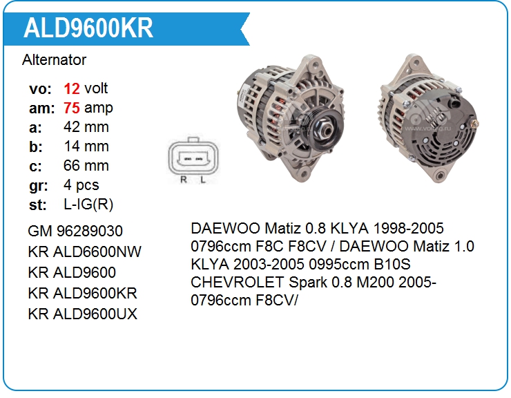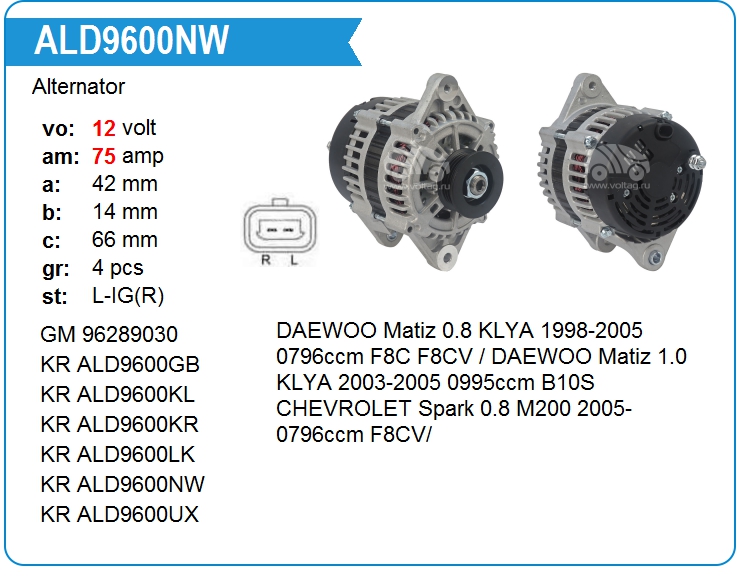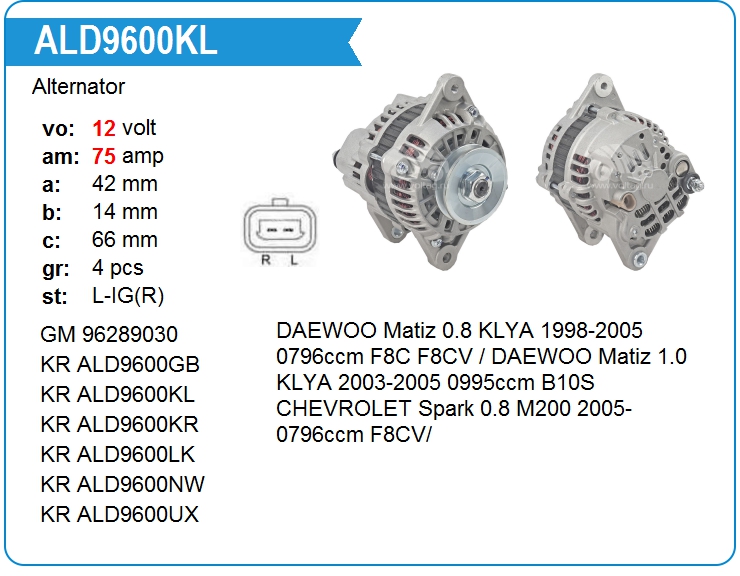 | KRAUF | ALD9600NW | Alternator | MSK | 1 | on stock | 173,48 EUR | |