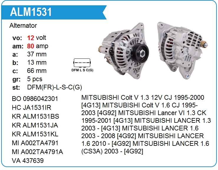 | Motorherz | ALM1531WA | Alternator | MSK | 1 | on stock | 181,76 EUR | |