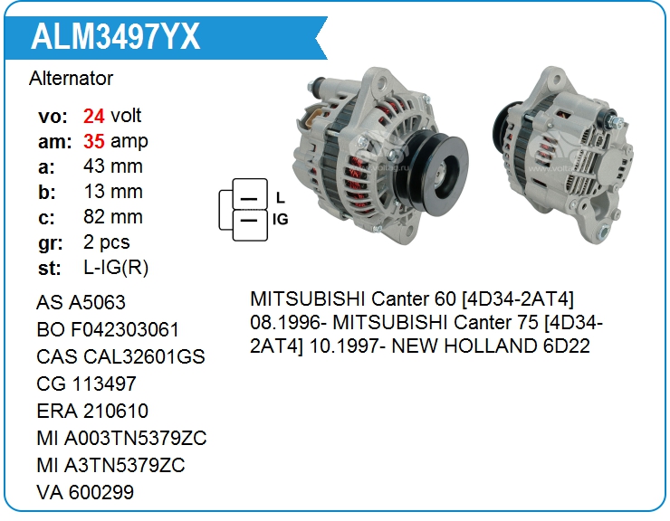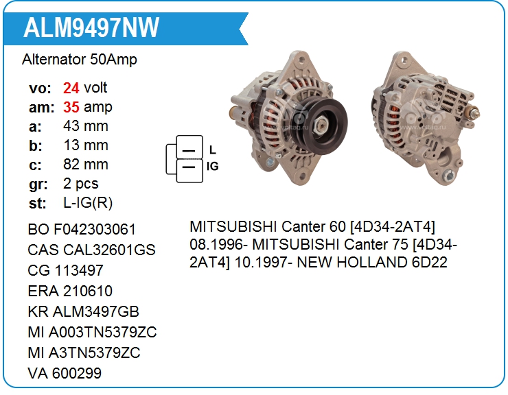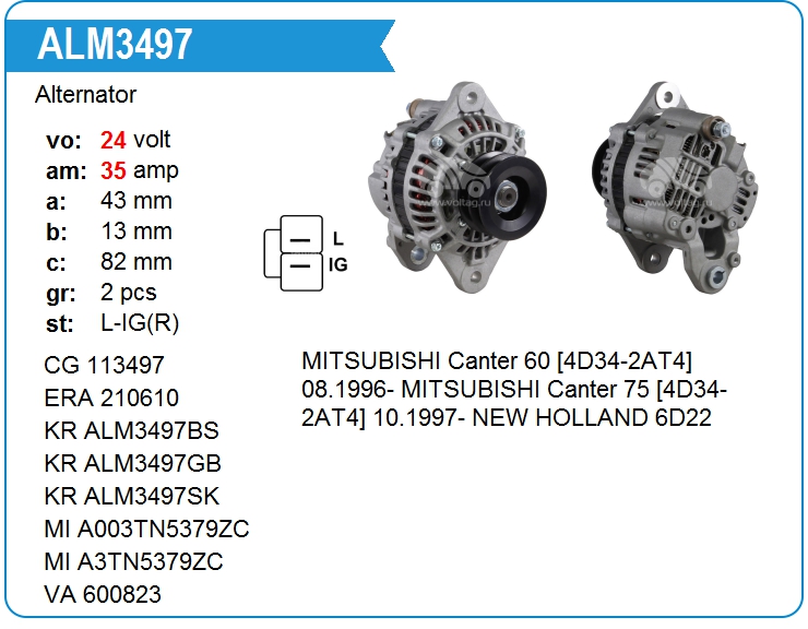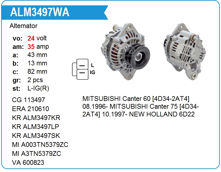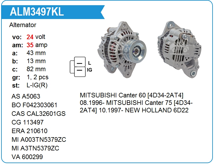 | Motorherz | ALM3497WA | Alternator | MSK | 1 | on stock | 192,75 EUR | |