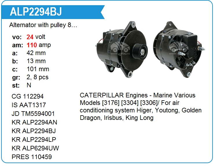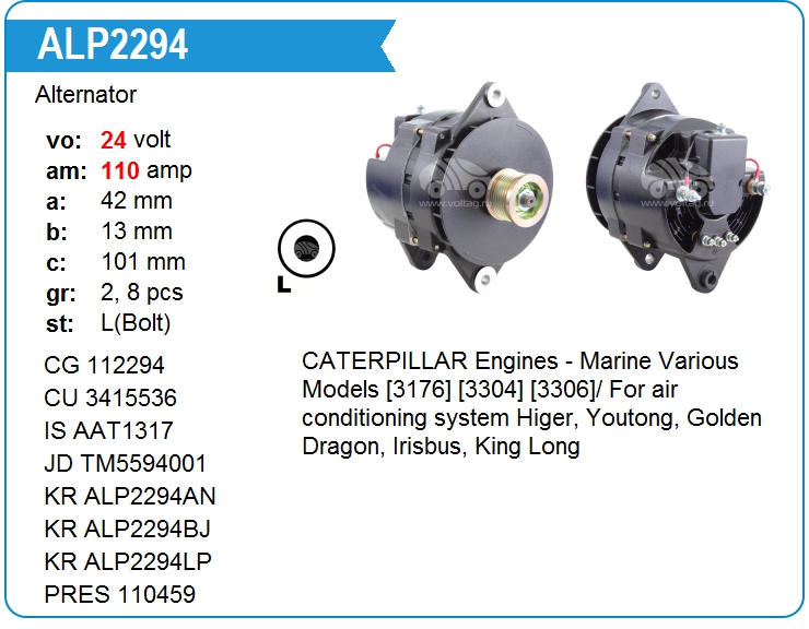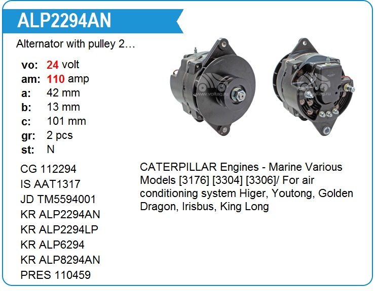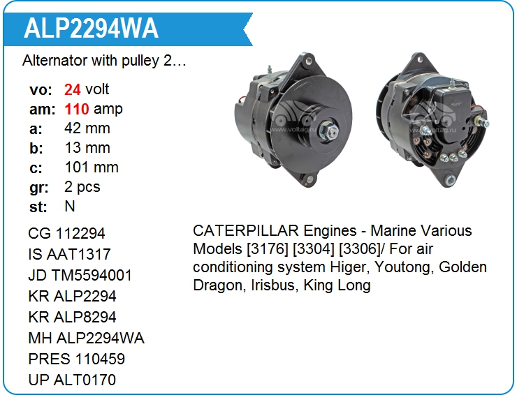 | Motorherz | ALP2294WA | Alternator with pulley 2 grooves | MSK | 1 | on stock | 404,78 EUR | |