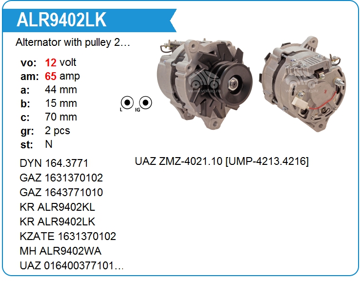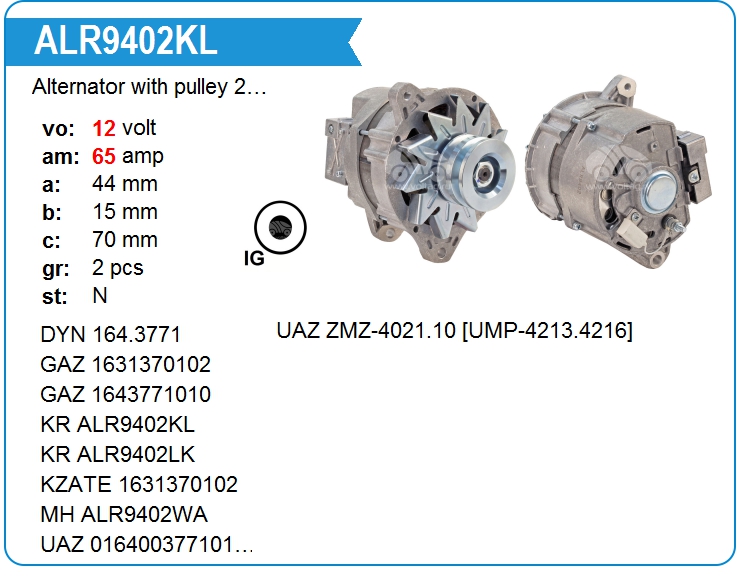 Alternator with pulley 2 grooves
