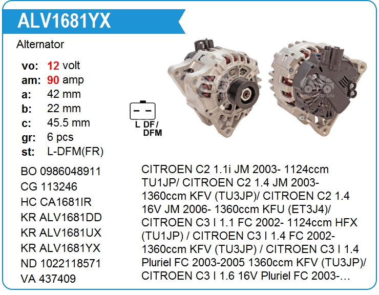 | KRAUF | ALV1681YX | Alternator | MSK | 1 | on stock | 141,16 EUR | |