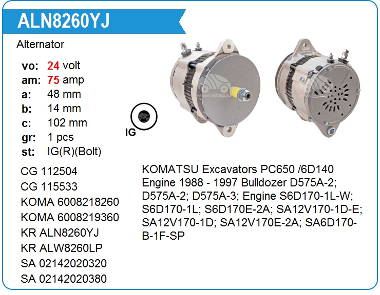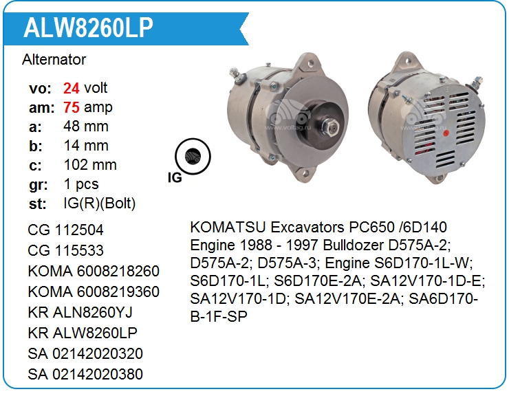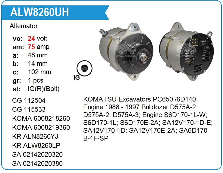 | Motorherz | ALN8260WA | Alternator | MSK | 1 | on stock | 327,68 EUR | |
