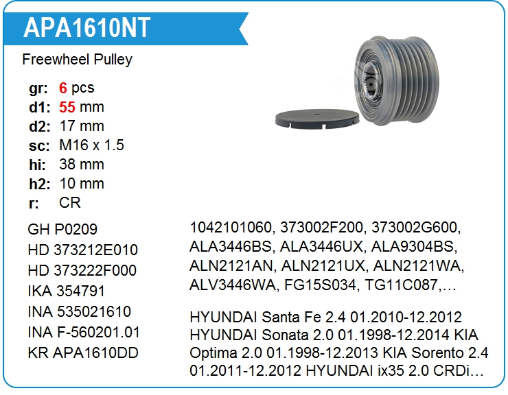 KRAUF | APA1610NT | Freewheel Pulley | MSK | 1 | on stock | 65,04 EUR | |