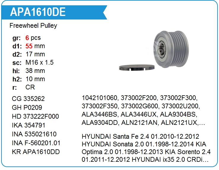 KRAUF | APA1610DE | Freewheel Pulley | MSK | 1 | on stock | 55,75 EUR | |
