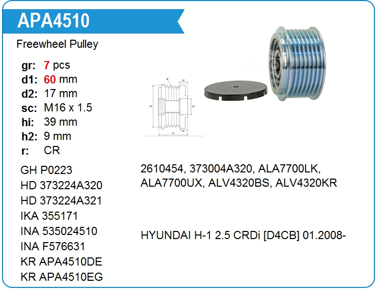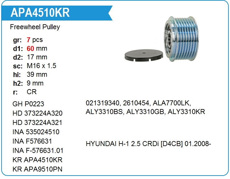 | KRAUF | APA4510KR | Freewheel Pulley | MSK | 1 | on stock | 115,64 EUR |