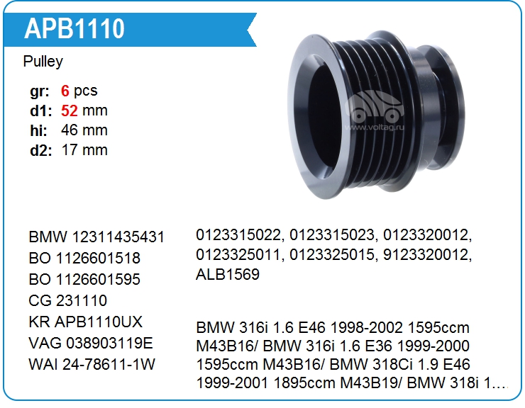 | KRAUF | APB1110UX | Шкив генератора | out of stock | call | |||