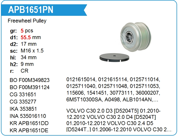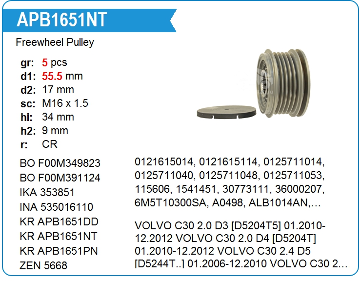 | KRAUF | APB1651NT | Freewheel Pulley | MSK | 1 | on stock | 48,19 EUR | |