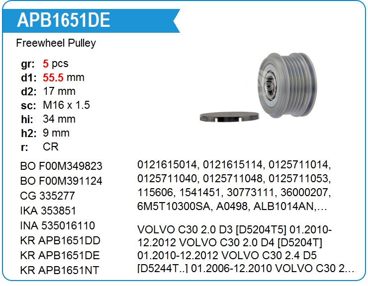 | KRAUF | APB1651DE | Freewheel Pulley | MSK | 1 | on stock | 77,10 EUR |