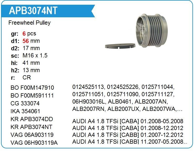 KRAUF | APB3074DE | Freewheel Pulley | MSK | 1 | on stock | 65,87 EUR | |