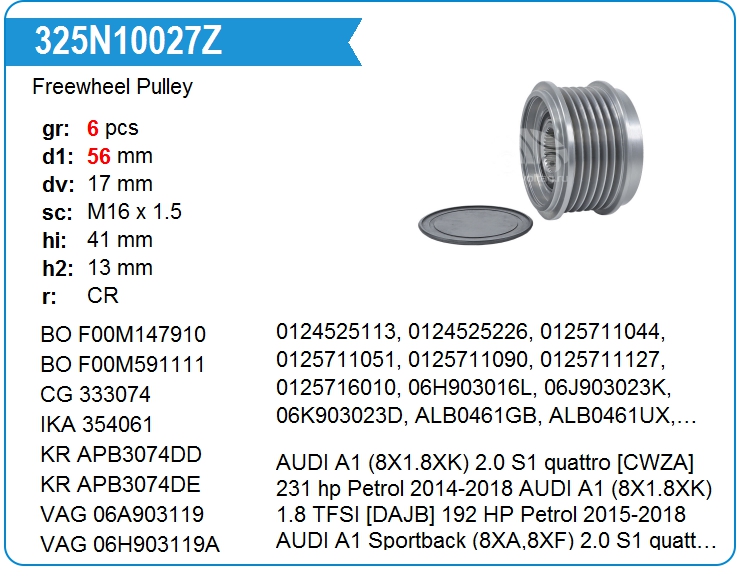 ZAUFER | 325N10027Z | Freewheel Pulley | MSK | 1 | on stock | * 46,41 EUR | |