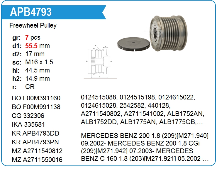 | UTM | PB4793A | Freewheel Pulley | MSK | 1 | on stock | 43,49 EUR | |