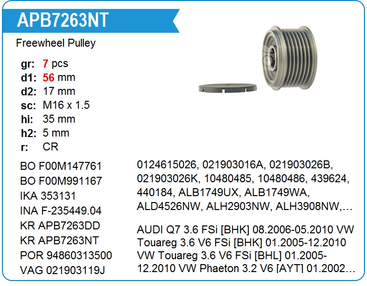 KRAUF | APB7263NT | Freewheel Pulley | MSK | 1 | on stock | 74,33 EUR | |