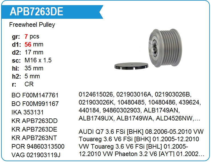 KRAUF | APB7263DE | Freewheel Pulley | MSK | 1 | on stock | 74,33 EUR | |