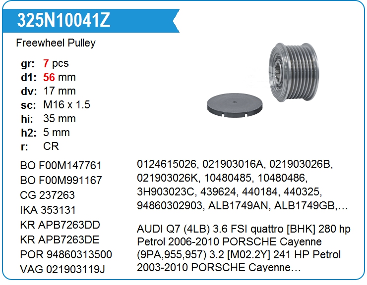 ZAUFER | 325N10041Z | Freewheel Pulley | MSK | 1 | on stock | * 53,15 EUR | |
