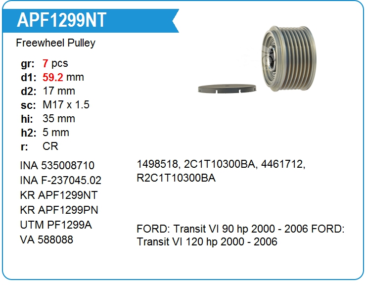 | UTM | PF1299A | Freewheel Pulley | MSK | 1 | on stock | 43,49 EUR | |