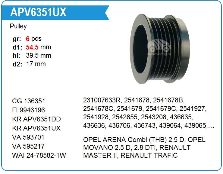 | KRAUF | APV6351UX | Шкив генератора | out of stock | call | |||