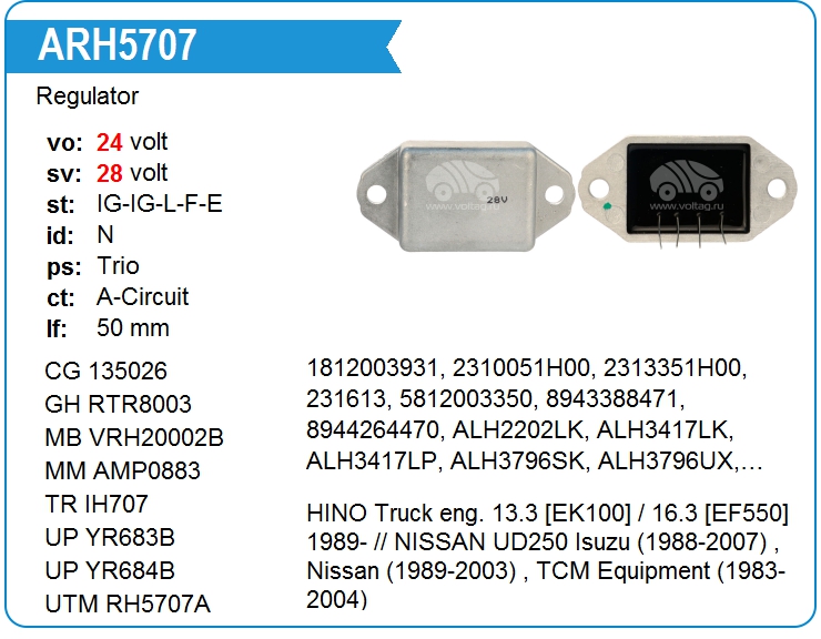 UTM | RH5707A | Регулятор генератора | out of stock | call | |||