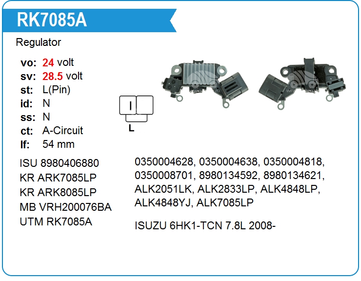 UTM | RK7085A | Регулятор генератора | out of stock | call | |||