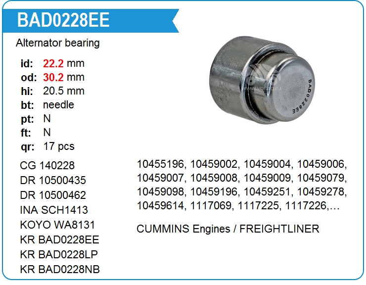KRAUF | BAD0228EE | Подшипник генератора | out of stock | call | |||