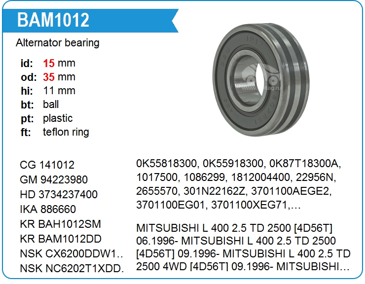 Alternator bearing BAM1012