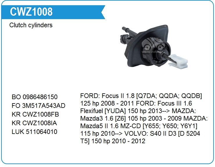 | KRAUF | CWZ1008ZX | Цилиндр сцепления главный | out of stock | call |