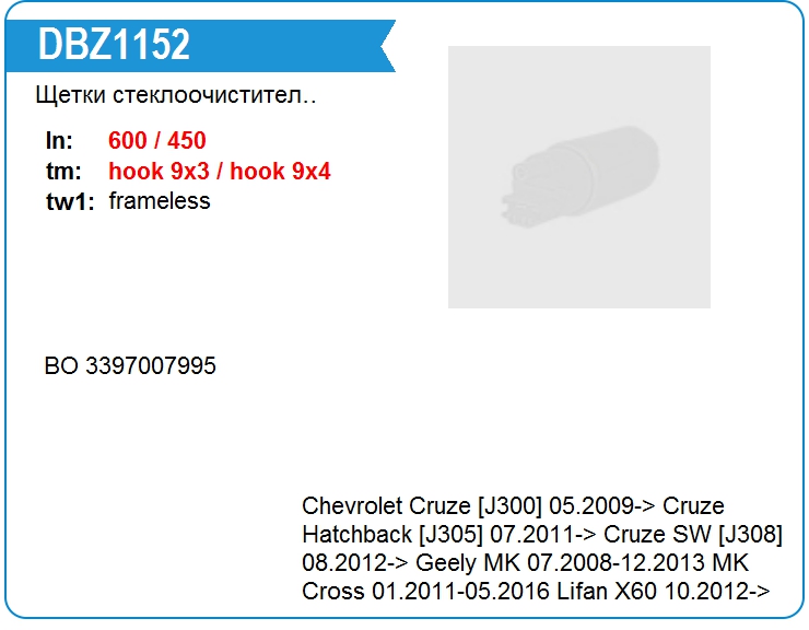| Replacing: DBZ1160 | |||||||
