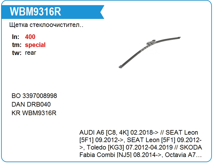 KRAUF | WBM9316R | Щетка стеклоочистителя задняя | out of stock | call |