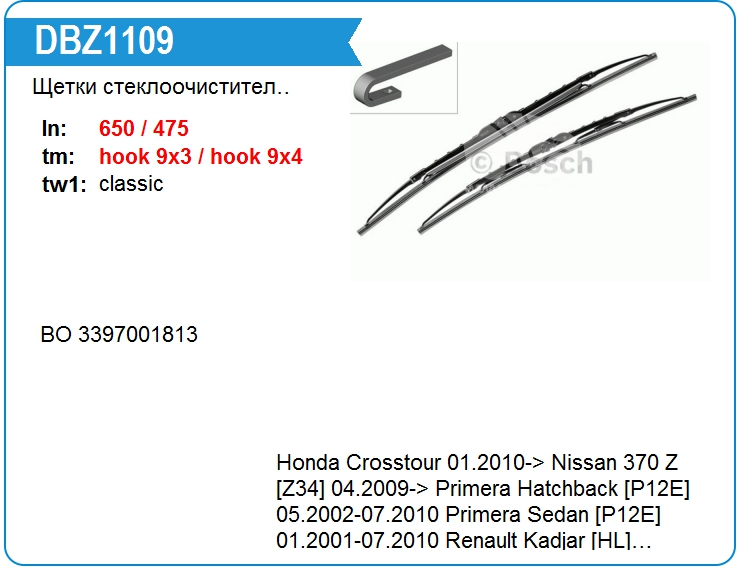 Щетки стеклоочистителя 650 мм + 475 мм (комплект)