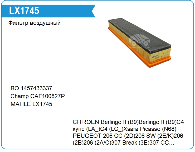 Фильтр воздушный MAHLE LX1745 (LX1745)