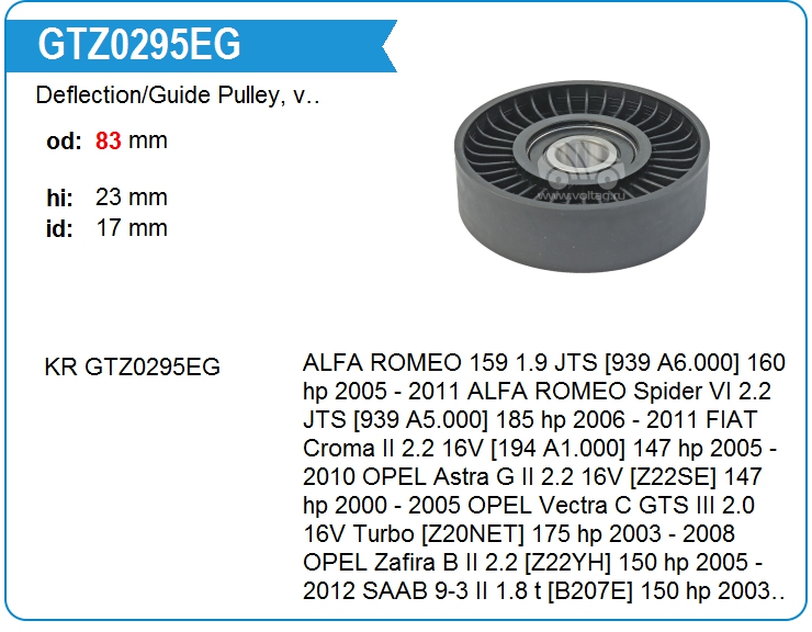 Deflection/Guide Pulley, v-ribbed belt GTZ0295