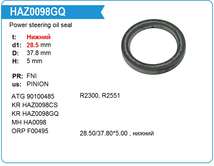 | KRAUF | HAZ0098GQ | Power steering oil seal | MSK | 1 | on stock | 7,71 EUR | |