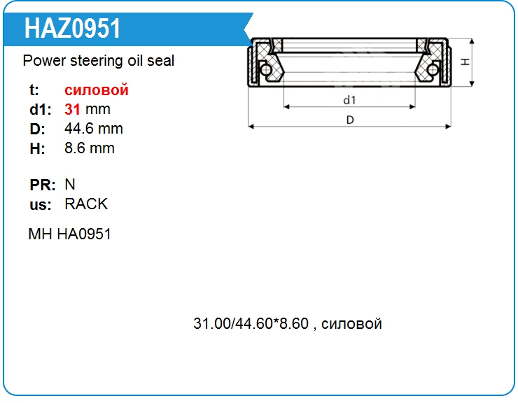 Power steering oil seal HAZ0951