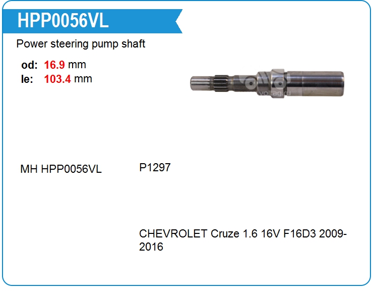 | Motorherz | HPP0056VL | Power steering pump shaft | MSK | 1 | on stock | 4,44 EUR |