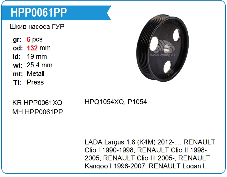 | Motorherz | HPP0061PS | Шкив с валом насоса ГУР | MSK | 1 | on stock | 23,63 EUR |