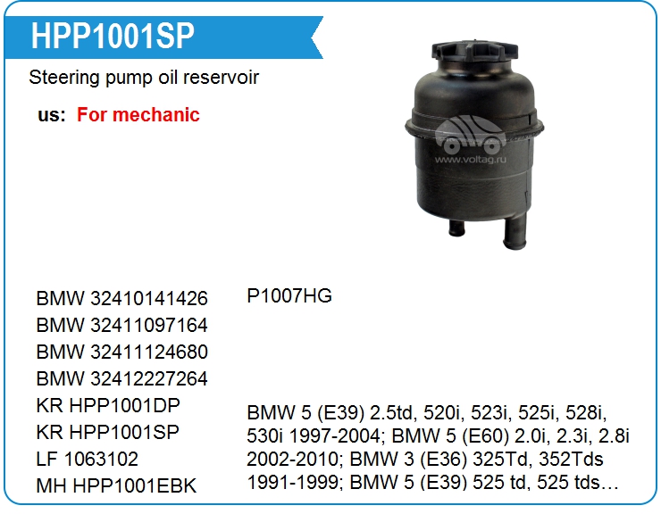 | KRAUF | HPP1001SP | Steering pump oil reservoir | MSK | 1 | on stock | 15,42 EUR | |
