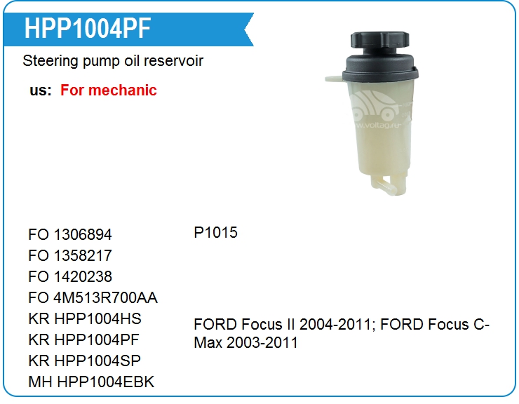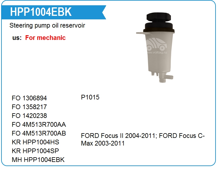 | KRAUF | HPP1004PF | Steering pump oil reservoir | MSK | 1 | on stock | 19,27 EUR | |