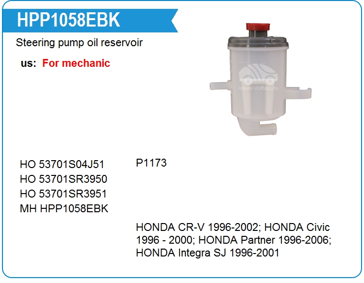 Steering pump oil reservoir HPP1058EBK