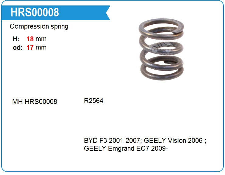 | Motorherz | HRS00008 | Пружина поджима рулевой рейки | out of stock | call |