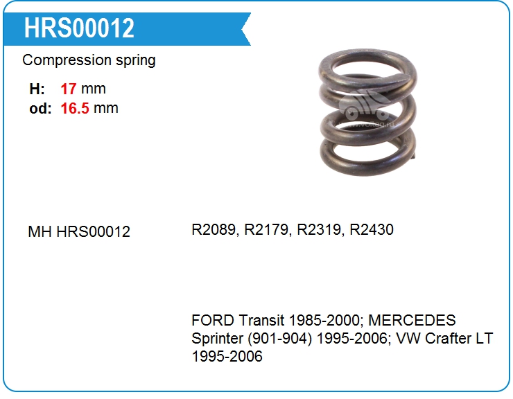| Motorherz | HRS00012 | Пружина поджима рулевой рейки | out of stock | call |
