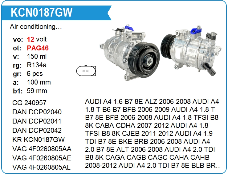 | KRAUF | KCN0187GW | Air conditioning compressor | MSK | 1 | on stock | 312,72 EUR | |