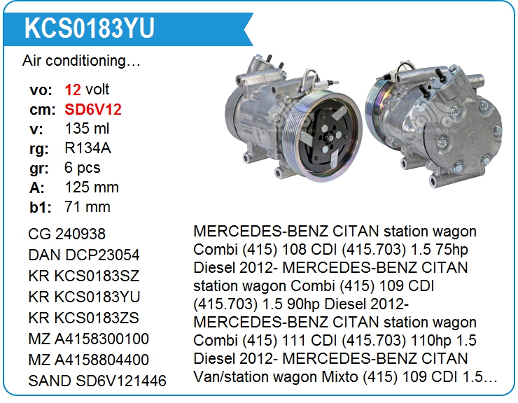 KRAUF | KCS0183YU | Air conditioning compressor | MSK | 1 | on stock | 288,03 EUR | |
